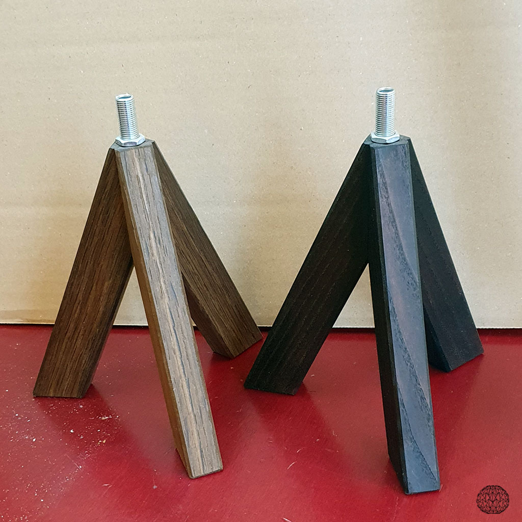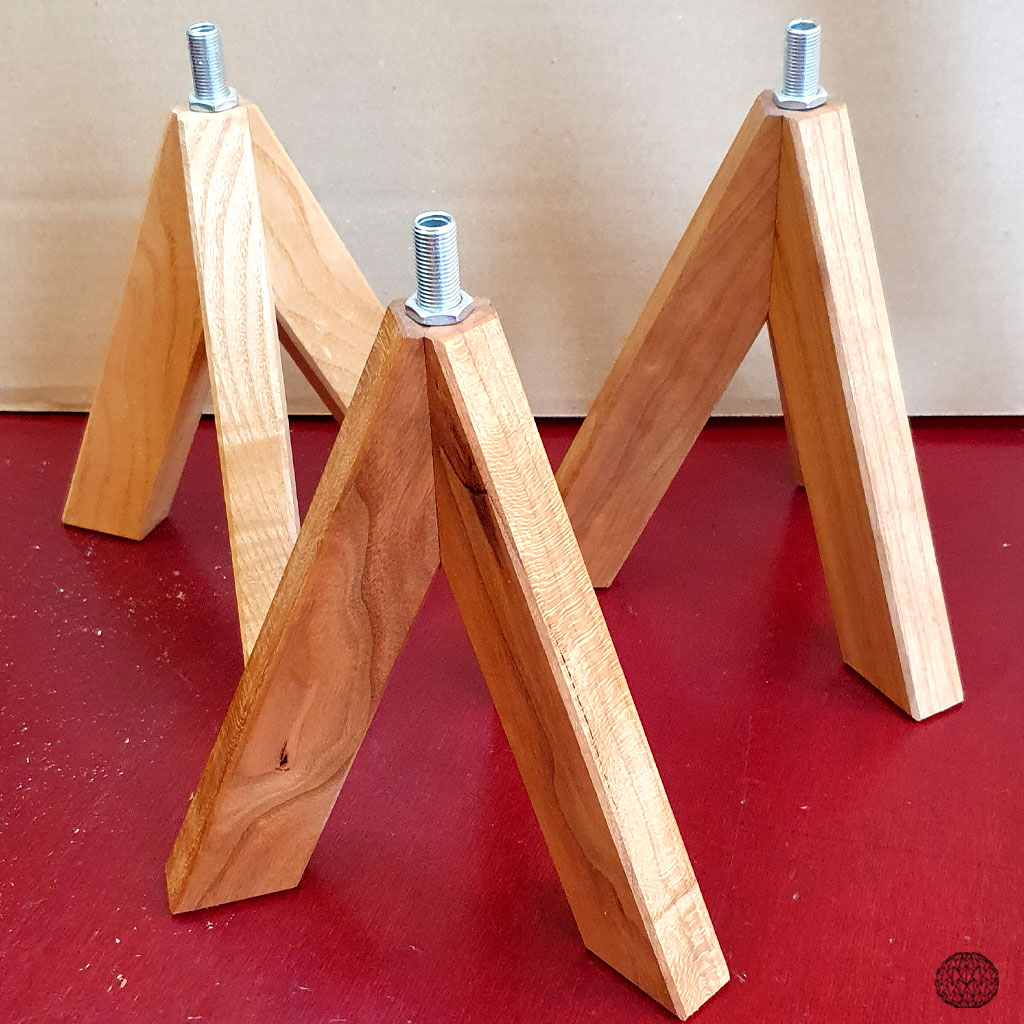 De driepoot is een staaltje vakwerk van meubelmaker Anette Koehnen. Je kunt kieze uit lichtere houtsoorten (essen, iepen, plataan, Ameriaans kersen) of juist wat donkerder kleur hout (gerookt eiken of gebeitst essen).